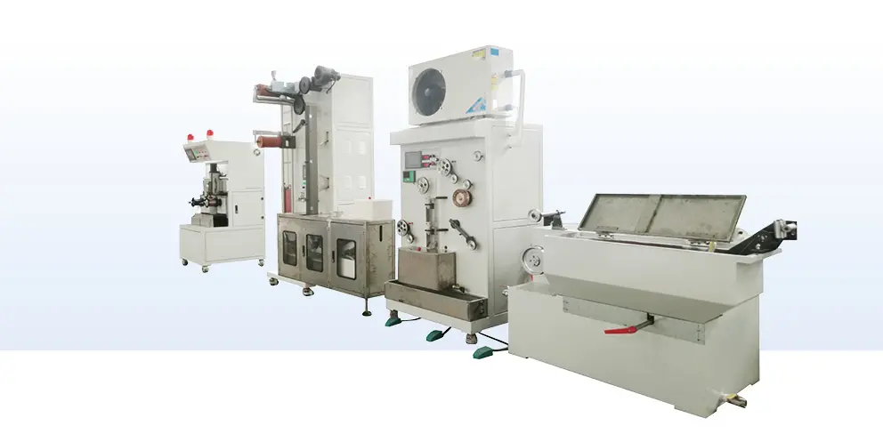 Круглая проволока проходит последовательно через устройство формования, непрерывный отжиг в режиме онлайн, очистку и сварку, быстрое лужение, систему контроля натяжения в накопительной линии, а также двухпозиционную прецизионную намотку.